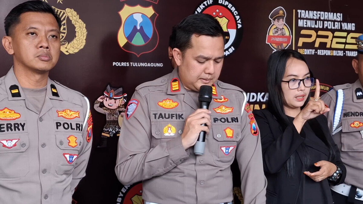 Tulungagung, jurnalmataraman.com – Kecelakaan lalu lintas kembali terjadi di wilayah Kabupaten Tulungagung. Seorang pengendara sepeda motor meninggal dunia setelah terlibat insiden dengan bus Harapan Jaya di Jalan Raya Kaliwungu, Kecamatan Ngunut pada Jumat sore 14 November 2025. Dalam peristiwa ini sopir bus telah ditetapkan sebagai tersangka oleh pihak kepolisian.