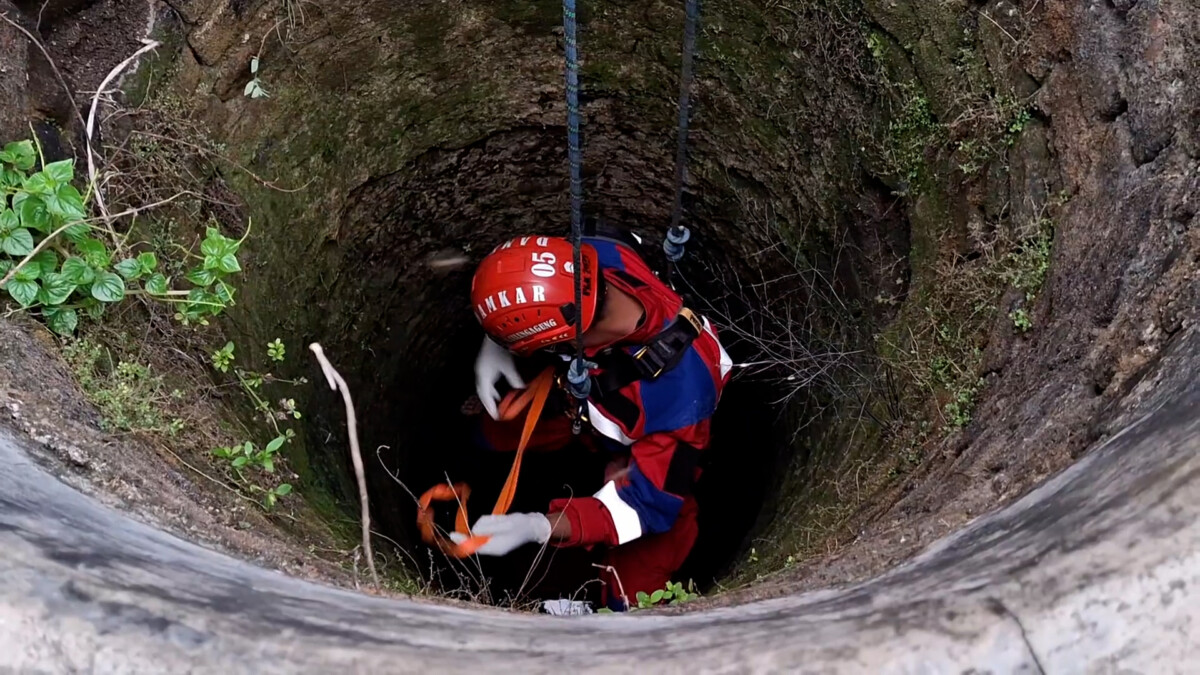 Proses evakuasi berlangsung dramatis dan memerlukan waktu sekitar 30 menit. Petugas harus menurunkan peralatan khusus serta tali pengaman untuk mengangkat tubuh korban dari dasar sumur.