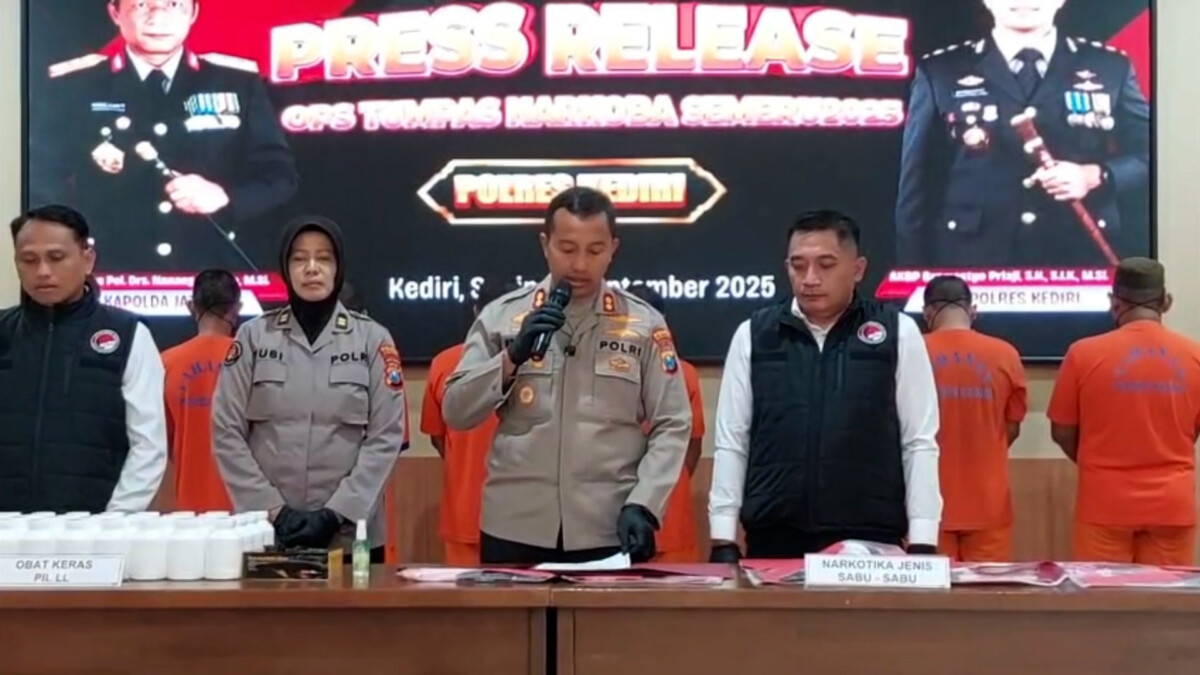 Kediri, jurnalmataraman.com – Polres Kediri berhasil membongkar sindikat peredaran narkotika dan obat keras berbahaya (okerbaya) dalam Operasi Tumpas Semeru 2025. Dalam operasi yang berlangsung selama 12 hari mulai 30 Agustus hingga 10 September 2025, sebanyak 14 kasus berhasil diungkap dengan total 16 tersangka diamankan.